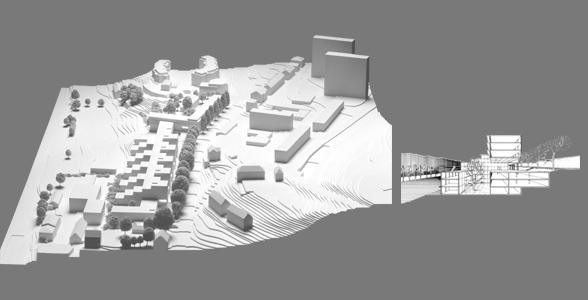 Eine Bebauungsstruktur entwickelt aus der engen Beziehung zwischen Baukörper und Topographie.