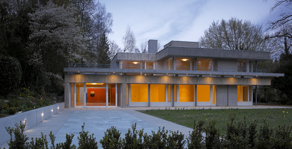Hauptaufgabe der umfassenden Erweiterung und Renovation der Residenz der Liechtensteinischen Botschaft in Bern war die Verbesserung des offiziellen Empfangsbereiches. Der repräsentative Essraumanbau mit dem erhöhten Oblicht setzt einen neuen Akzent. Der längs gerichtete Raum erweitert sich optisch in den mit der Kunstinstallation neu gestalteten Hof auf der einen und zum neuen Aussensitzplatz auf der anderen Seite. Die mit gebeiztem Birnenholzfurnier verkleidete Wand zwischen Wohn- und Essraum ist als gleichmässige Folge von eingebauten Türen, Schränken und verspielten Nischen gestaltet, eine Anspielung an die traditionellen “Spiegelsalons”. Grundhaltung des Projekts ist die Wahrung des Charakters des Originalbaus von 1966 und der sanfte Übergang von Bestehendem zum Neuen. Erst auf den zweiten Blick erkennt man, was bereits da war und was neu hinzu gekommen ist.